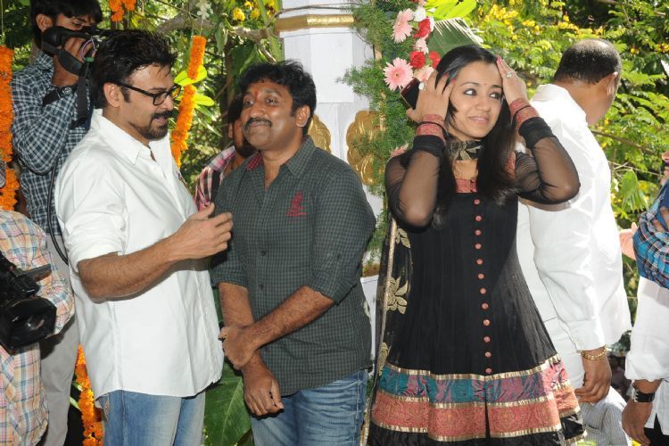 Victory Venkatesh, Trisha starrer new movie was launched today at Ramanaidu Studios, Hyderabad. Gopichand Malineni is the director of this film and Bellamkonda suresh produces it under Sai Ganesh Productions banner. Dr.D.Ramanaidu gave the clap for the first shot on Venkatesh and Trisha . Srinu Vaitla switched on the camera and V.V.Vinayak directed the first shot.