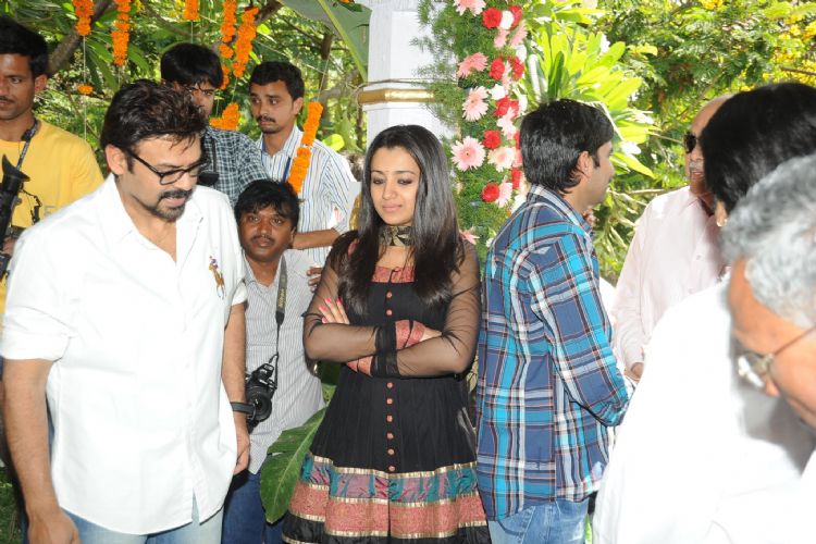 Victory Venkatesh, Trisha starrer new movie was launched today at Ramanaidu Studios, Hyderabad. Gopichand Malineni is the director of this film and Bellamkonda suresh produces it under Sai Ganesh Productions banner. Dr.D.Ramanaidu gave the clap for the first shot on Venkatesh and Trisha . Srinu Vaitla switched on the camera and V.V.Vinayak directed the first shot.