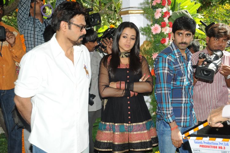 Victory Venkatesh, Trisha starrer new movie was launched today at Ramanaidu Studios, Hyderabad. Gopichand Malineni is the director of this film and Bellamkonda suresh produces it under Sai Ganesh Productions banner. Dr.D.Ramanaidu gave the clap for the first shot on Venkatesh and Trisha . Srinu Vaitla switched on the camera and V.V.Vinayak directed the first shot.
