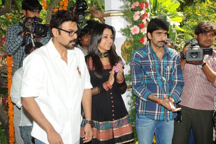 Victory Venkatesh, Trisha starrer new movie was launched today at Ramanaidu Studios, Hyderabad. Gopichand Malineni is the director of this film and Bellamkonda suresh produces it under Sai Ganesh Productions banner. Dr.D.Ramanaidu gave the clap for the first shot on Venkatesh and Trisha . Srinu Vaitla switched on the camera and V.V.Vinayak directed the first shot.