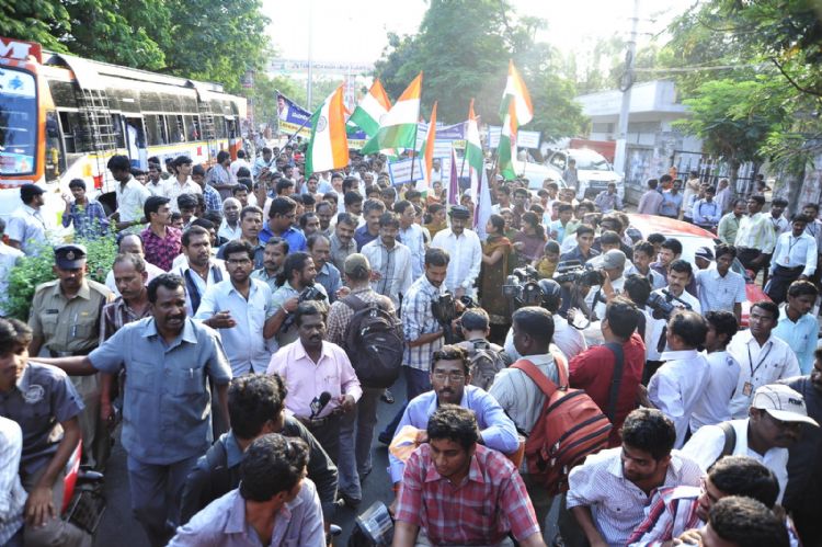FOR A CAUSE: Actor M. Mohan Babu leading a ‘padayatra' of students expressing solidarity with social activist Anna Hazare, in Tirupati on Friday.