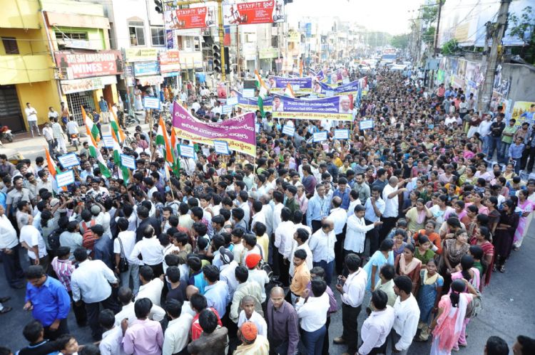 FOR A CAUSE: Actor M. Mohan Babu leading a ‘padayatra' of students expressing solidarity with social activist Anna Hazare, in Tirupati on Friday.