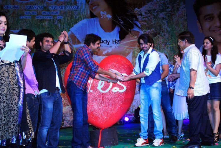 The audio release of Naga Chaitanya's latest movie '100% Love' under Sukumar direction was held at Shilpa Kala Vedika on Monday. Producre Allu Aravind, Nagendra Babu, Nagarjuna, Allu Arjun, Ram, Tamanna graced the event.