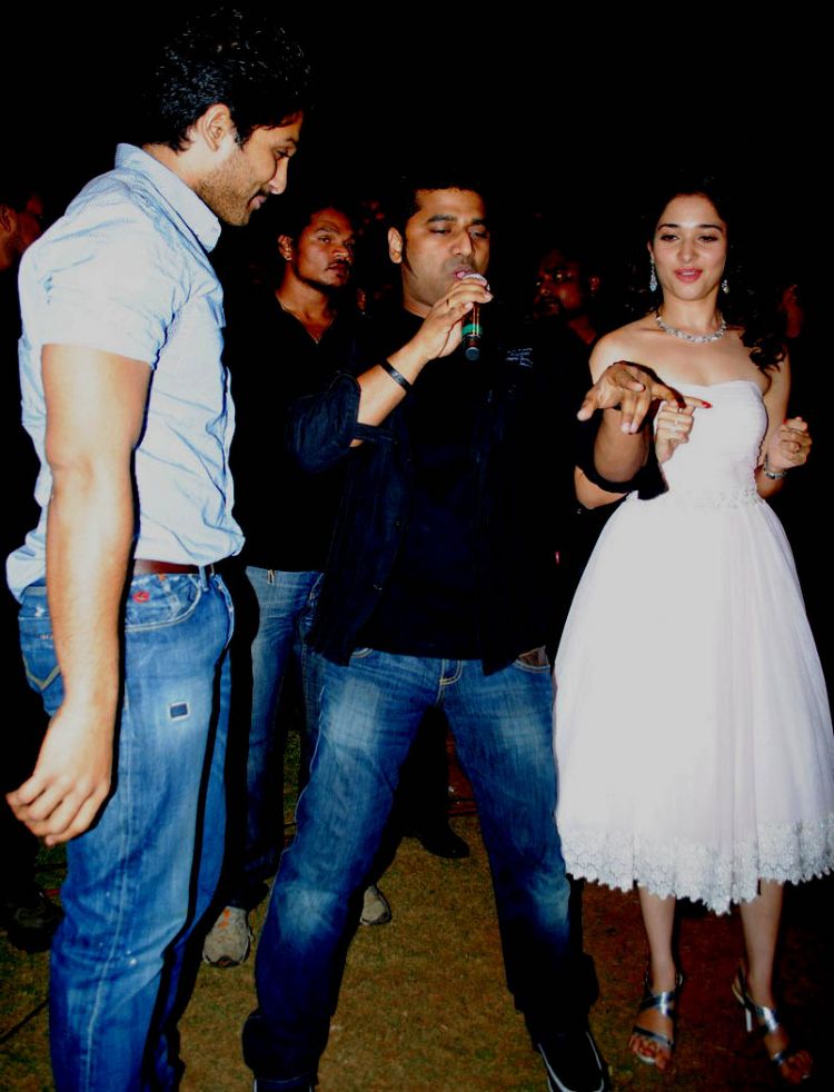 The audio release of Naga Chaitanya's latest movie '100% Love' under Sukumar direction was held at Shilpa Kala Vedika on Monday. Producre Allu Aravind, Nagendra Babu, Nagarjuna, Allu Arjun, Ram, Tamanna graced the event.