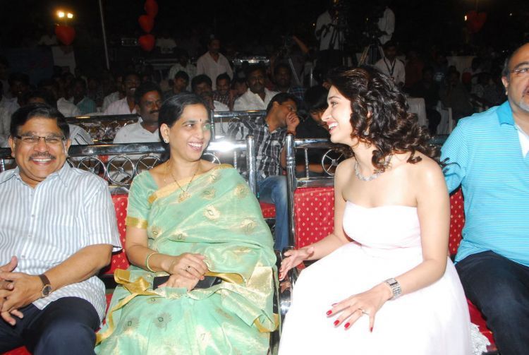 The audio release of Naga Chaitanya's latest movie '100% Love' under Sukumar direction was held at Shilpa Kala Vedika on Monday. Producre Allu Aravind, Nagendra Babu, Nagarjuna, Allu Arjun, Ram, Tamanna graced the event.