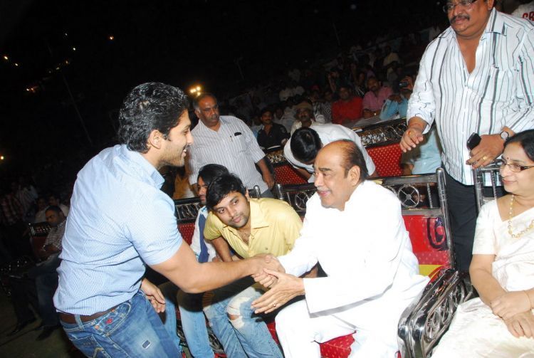 The audio release of Naga Chaitanya's latest movie '100% Love' under Sukumar direction was held at Shilpa Kala Vedika on Monday. Producre Allu Aravind, Nagendra Babu, Nagarjuna, Allu Arjun, Ram, Tamanna graced the event.