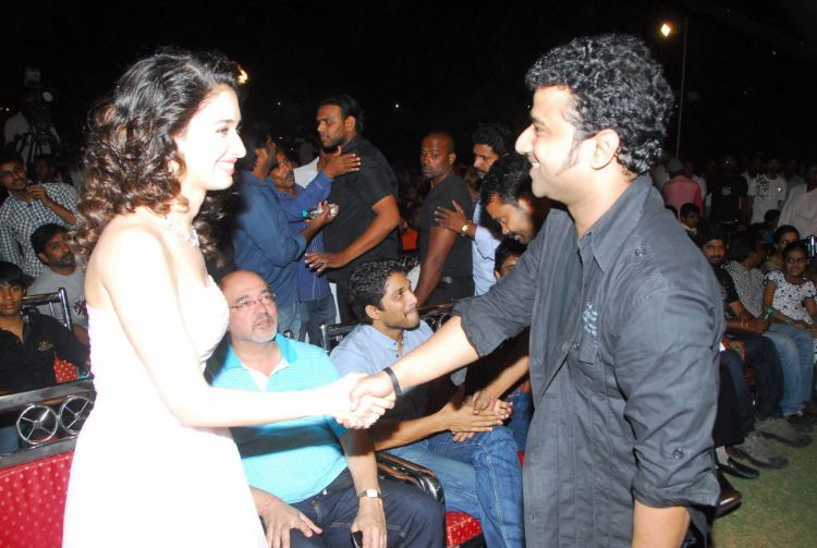 The audio release of Naga Chaitanya's latest movie '100% Love' under Sukumar direction was held at Shilpa Kala Vedika on Monday. Producre Allu Aravind, Nagendra Babu, Nagarjuna, Allu Arjun, Ram, Tamanna graced the event.