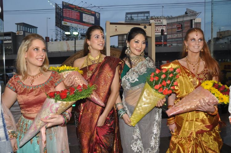 Kalaniketans Bride & Groom collection has been launched by Miss Sweden: Renate Cerljen, Miss Canada: Bridget Nickerson, Miss Iceland: Fanny Ingvarsdottir, Miss Mongolia: Gantogoo Bayarkhuu, Miss Albania: Ertemiona Mejdani. The launch is followed by a Fashion Show by the International beauties.