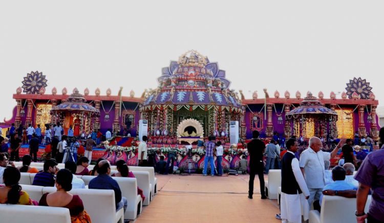 The reception of the much-awaited wedding of Jr NTR -Lakshmi Pranathi held at a grand setting erected at Hitex in Madhapur on Thursday evening. NTR is to tie the knot with Lakshmi Pranathi at 2.41 am (muhurtam) on Friday morning. True to the wishes of NTR the marriage venue resembles the ambience of a royal wedding which is unheard of in Tollywwod.