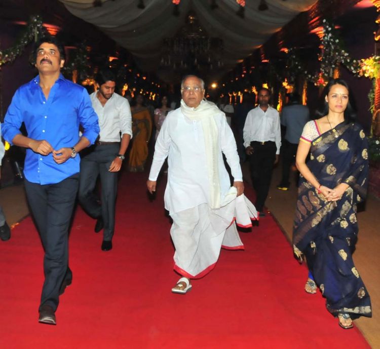 The reception of the much-awaited wedding of Jr NTR -Lakshmi Pranathi held at a grand setting erected at Hitex in Madhapur on Thursday evening. NTR is to tie the knot with Lakshmi Pranathi at 2.41 am (muhurtam) on Friday morning. True to the wishes of NTR the marriage venue resembles the ambience of a royal wedding which is unheard of in Tollywwod.