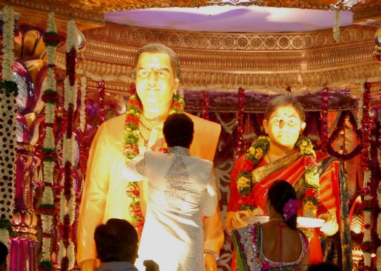 The reception of the much-awaited wedding of Jr NTR -Lakshmi Pranathi held at a grand setting erected at Hitex in Madhapur on Thursday evening. NTR is to tie the knot with Lakshmi Pranathi at 2.41 am (muhurtam) on Friday morning. True to the wishes of NTR the marriage venue resembles the ambience of a royal wedding which is unheard of in Tollywwod.