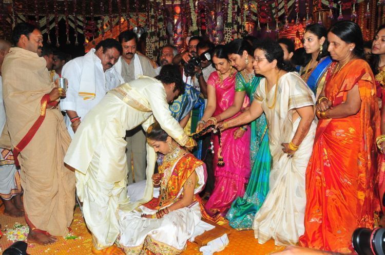 Popular actor NTR Jr. tied the nuptial knot with Lakshmi Pranathi at an auspicious time of 2.41 a.m. on Friday at Hitex in Madhapur. A team of 36 priests from East Godavari district led by Junior NTR's personal astrologer Karuparthi Koteswara Rao Sidhanti performed the wedding.