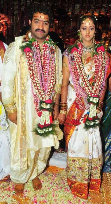 Popular actor NTR Jr. tied the nuptial knot with Lakshmi Pranathi at an auspicious time of 2.41 a.m. on Friday at Hitex in Madhapur. A team of 36 priests from East Godavari district led by Junior NTR's personal astrologer Karuparthi Koteswara Rao Sidhanti performed the wedding.