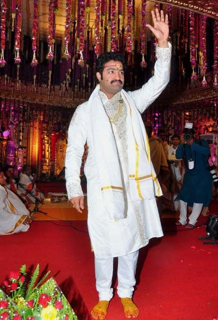 Popular actor NTR Jr. tied the nuptial knot with Lakshmi Pranathi at an auspicious time of 2.41 a.m. on Friday at Hitex in Madhapur. A team of 36 priests from East Godavari district led by Junior NTR's personal astrologer Karuparthi Koteswara Rao Sidhanti performed the wedding.