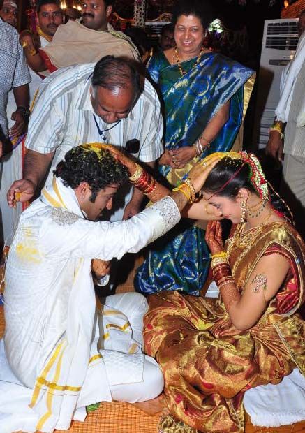 Popular actor NTR Jr. tied the nuptial knot with Lakshmi Pranathi at an auspicious time of 2.41 a.m. on Friday at Hitex in Madhapur. A team of 36 priests from East Godavari district led by Junior NTR's personal astrologer Karuparthi Koteswara Rao Sidhanti performed the wedding.