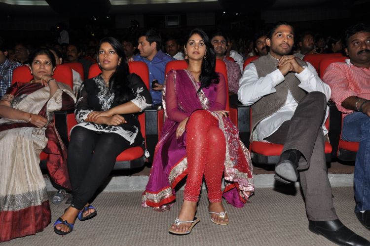 Allu Arjun, Tamannah starrer ‘Badrinath’ movie audio was released at a glittering function held at Silpakala Vedika in Madhapur on Saturday evening. Apart from the important crew of the film unit, producer Allu Aravind, Mega Star Chiranjeevi, his son Ramcharan Teja, directors Raja Mouli, Sukumar and many bigwigs of the telugu film industry graced the event.