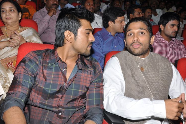 Allu Arjun, Tamannah starrer ‘Badrinath’ movie audio was released at a glittering function held at Silpakala Vedika in Madhapur on Saturday evening. Apart from the important crew of the film unit, producer Allu Aravind, Mega Star Chiranjeevi, his son Ramcharan Teja, directors Raja Mouli, Sukumar and many bigwigs of the telugu film industry graced the event.