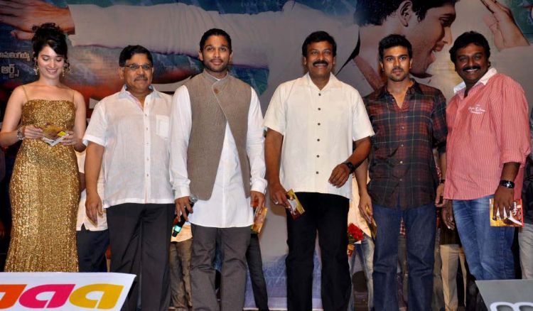 Allu Arjun, Tamannah starrer ‘Badrinath’ movie audio was released at a glittering function held at Silpakala Vedika in Madhapur on Saturday evening. Apart from the important crew of the film unit, producer Allu Aravind, Mega Star Chiranjeevi, his son Ramcharan Teja, directors Raja Mouli, Sukumar and many bigwigs of the telugu film industry graced the event.
