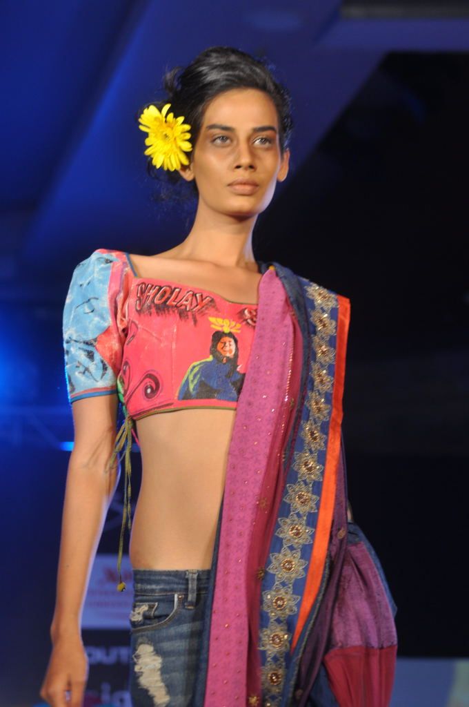 Models flaunt different outfits at Hyderabad Fashion Week held at hotel Marriot.