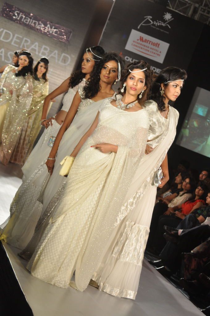 Models flaunt different outfits at Hyderabad Fashion Week held at hotel Marriot.