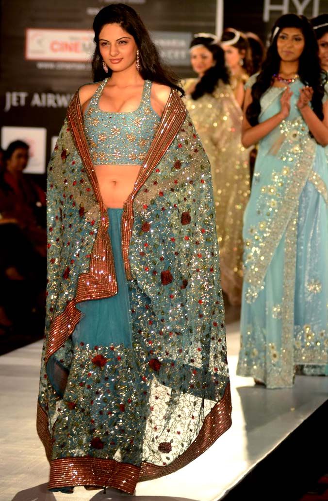 Models flaunt different outfits at Hyderabad Fashion Week held at hotel Marriot.
