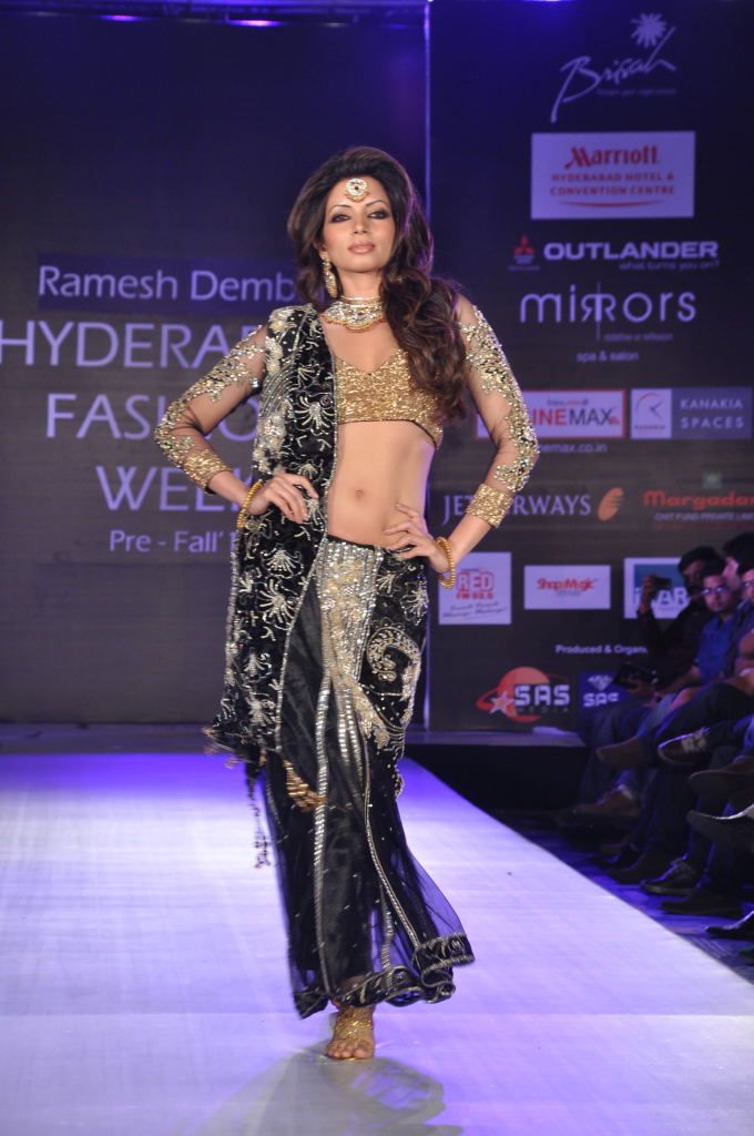 Actress Sanjana along with other prominent models walked the ramp at Hyderabad Fashion Week 2011 held at Hotel Marriot in the city.