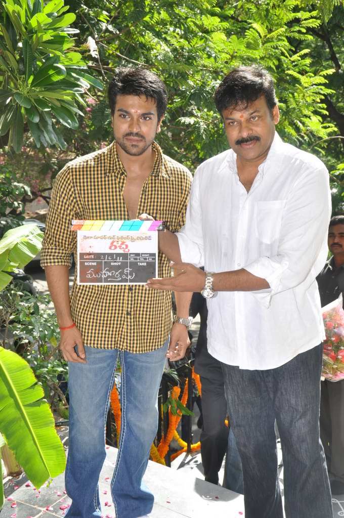 Chiranjeevi sounded the clap board for Ramcharan and Tamannah starrer Racha movie launch on Sunday.