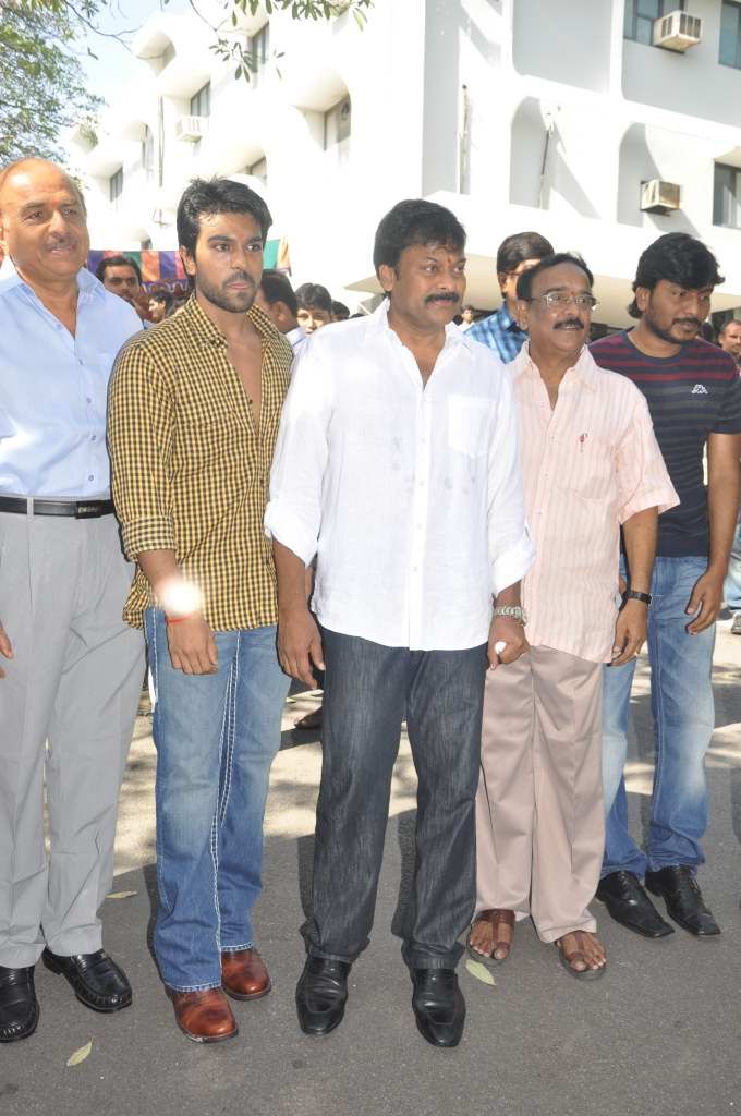 Chiranjeevi sounded the clap board for Ramcharan and Tamannah starrer Racha movie launch on Sunday.
