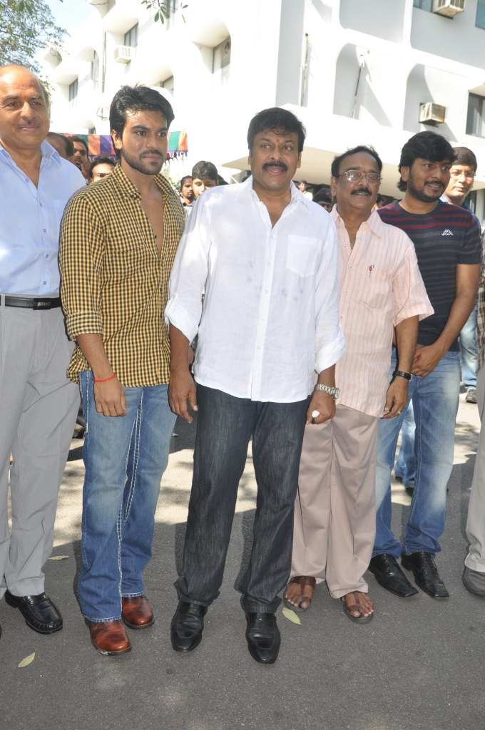 Chiranjeevi sounded the clap board for Ramcharan and Tamannah starrer Racha movie launch on Sunday.