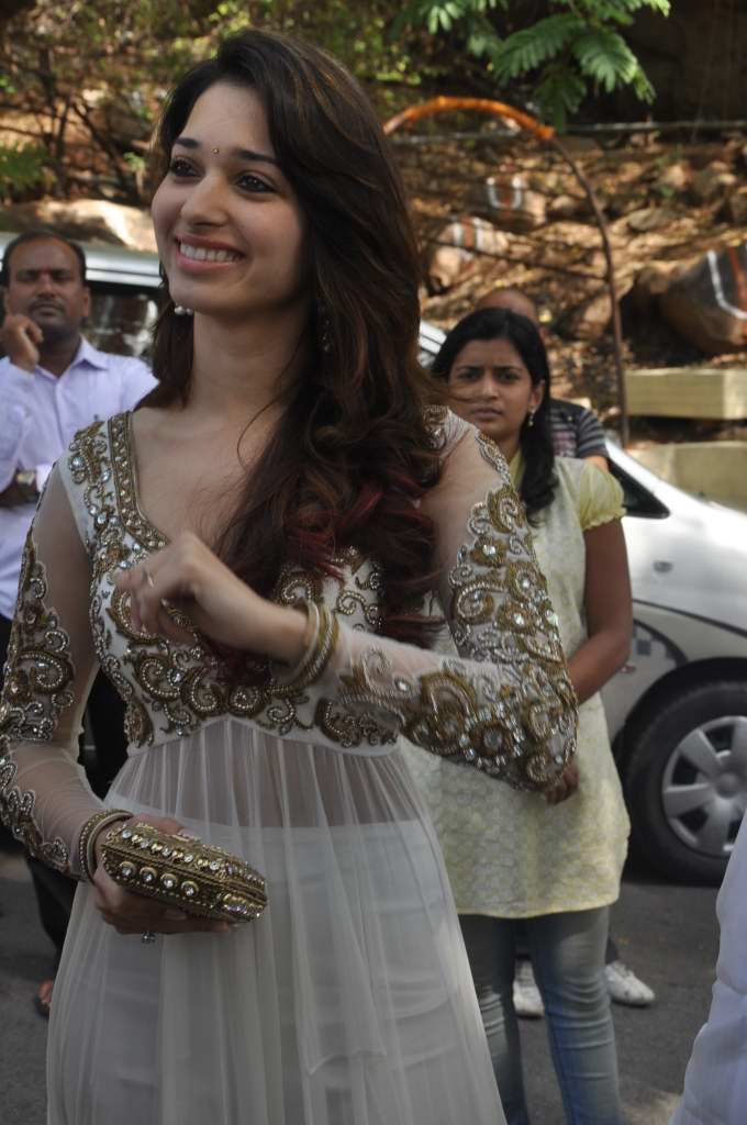 Chiranjeevi sounded the clap board for Ramcharan and Tamannah starrer Racha movie launch on Sunday.