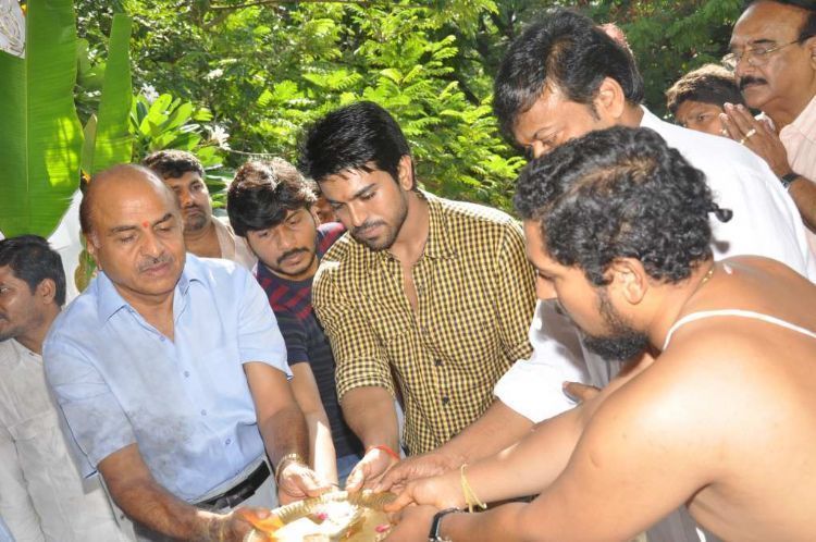 Chiranjeevi sounded the clap board for Ramcharan and Tamannah starrer Racha movie launch on Sunday.