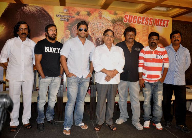 Allu Arjun, Allu Aravind, director VV Vinayak, lyric writer Chandra Bose and others participated in recently released Allu Arjun, Tamannah starrer film Badrinath success meet held in Hyderabad on Friday.