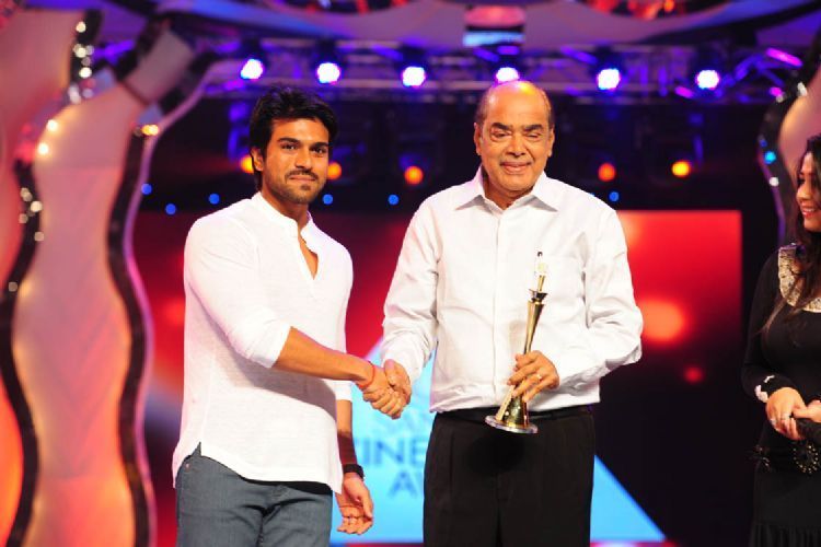 Star-studded event: Actors Nandamuri Balakrishna, Nagarjuna, Allu Arjun, Ramcharan Teja, Priya Mani, Anushka, Vishnu and Namita during the MAA cinema awards function held in Hyderabad on Sunday.