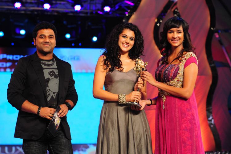Star-studded event: Actors Nandamuri Balakrishna, Nagarjuna, Allu Arjun, Ramcharan Teja, Priya Mani, Anushka, Vishnu and Namita during the MAA cinema awards function held in Hyderabad on Sunday.