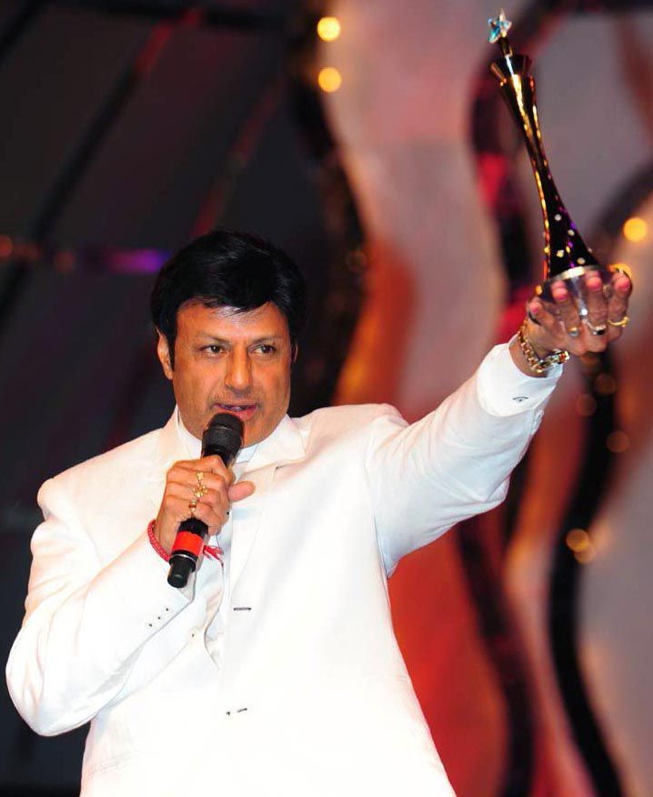 Star-studded event: Actors Nandamuri Balakrishna, Nagarjuna, Amala, Allu Arjun, Ramcharan Teja, Priya Mani, Anushka, Vishnu and Namita during the MAA cinema awards function held in Hyderabad on Sunday.
