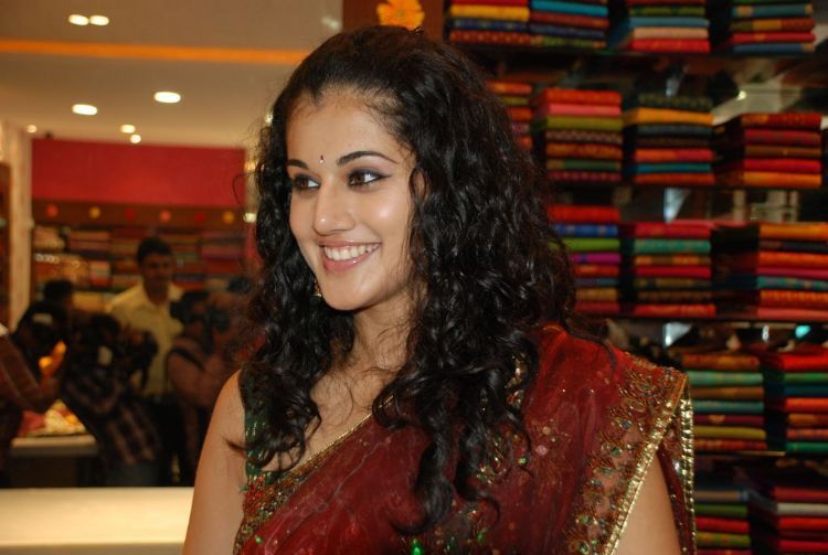Actress Tapsee Pannu launches Sreeja Fashions showroom in Hyderabad on Monday.