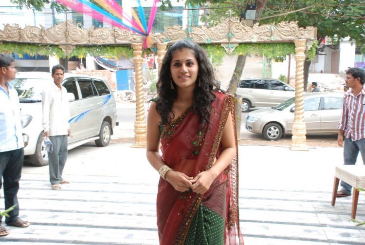 Actress Tapsee Pannu launches Sreeja Fashions showroom in Hyderabad on Monday.