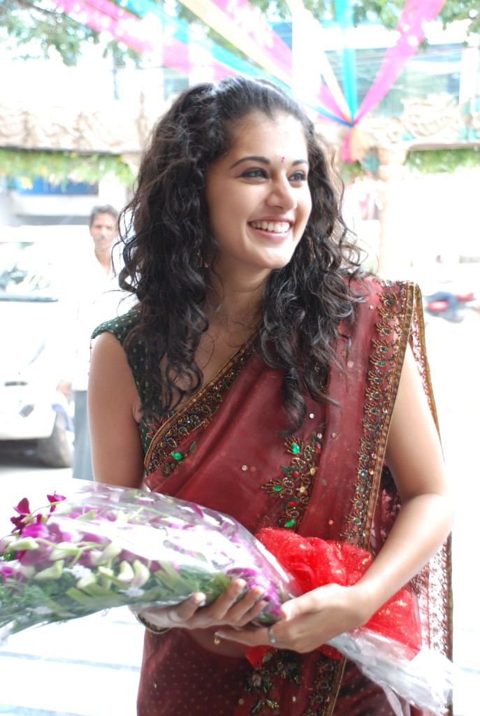 Actress Tapsee Pannu launches Sreeja Fashions showroom in Hyderabad on Monday.