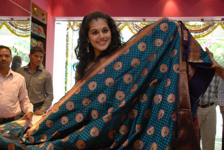 Actress Tapsee Pannu launches Sreeja Fashions showroom in Hyderabad on Monday.