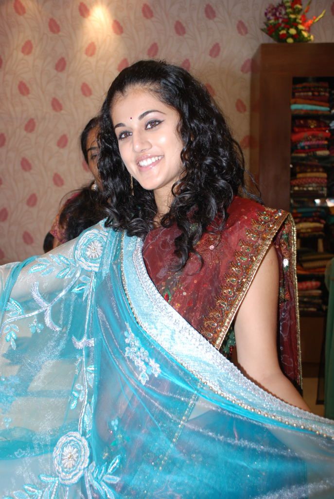 Actress Tapsee Pannu launches Sreeja Fashions showroom in Hyderabad on Monday.
