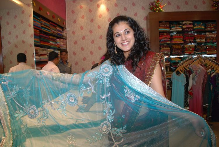 Actress Tapsee Pannu launches Sreeja Fashions showroom in Hyderabad on Monday.