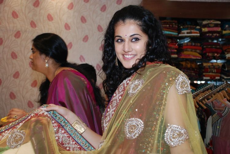 Actress Tapsee Pannu launches Sreeja Fashions showroom in Hyderabad on Monday.