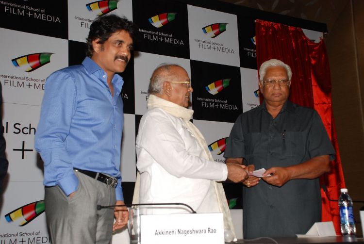 Star-studded: Veteran actor Akkineni Nageswara Rao along with his family members pose for photograph during the launch of International School of Film and Media in Hyderabad on Thursday.