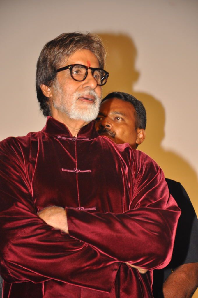 SPARKLING STARS: Amitabh Bachchan greets Chiranjeevi with a bear hug at the preview of his film ‘Bbuddah Hoga Tera Baap' in city on Thursday night. Actors Sonu Sood, Charmee and Prakash Raj are seen.