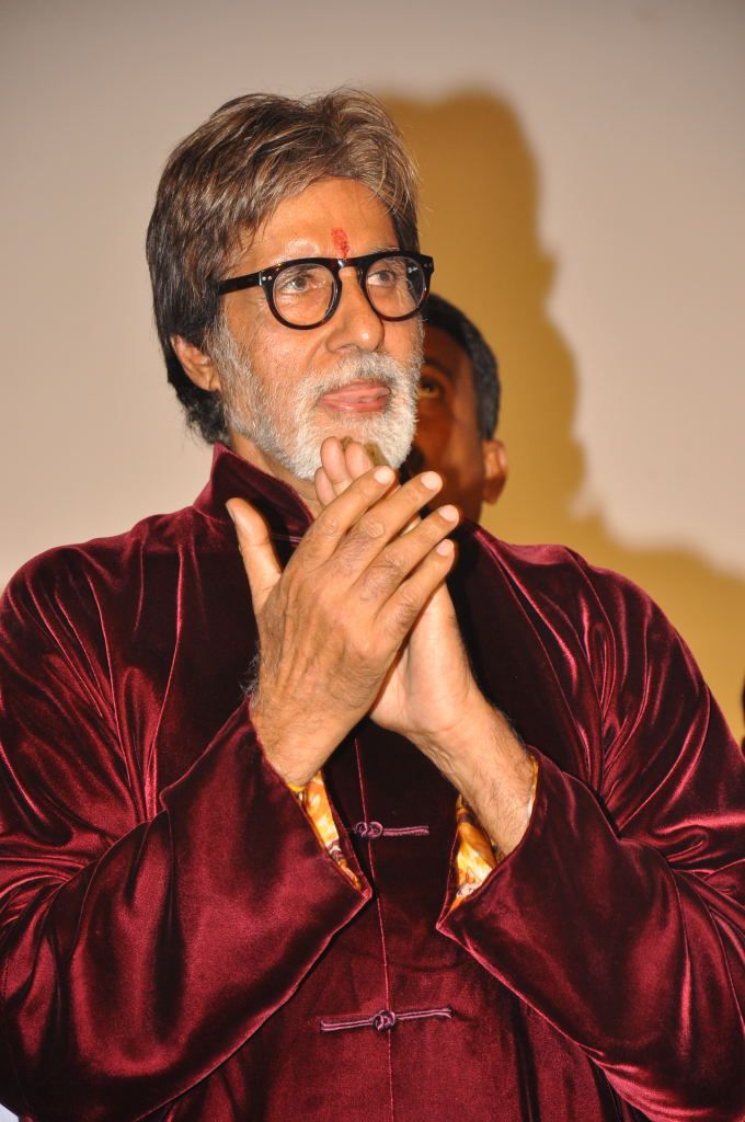 SPARKLING STARS: Amitabh Bachchan greets Chiranjeevi with a bear hug at the preview of his film ‘Bbuddah Hoga Tera Baap' in city on Thursday night. Actors Sonu Sood, Charmee and Prakash Raj are seen.