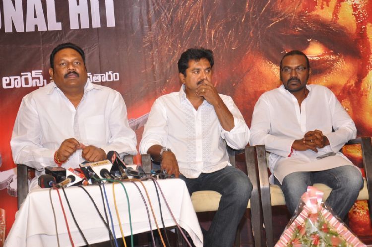 Kanchana success meet held in Hyderabad on Friday. Producer Bellamkonda Suresh felicitated Sarat Kumar and Raghavendra Lawrance.
