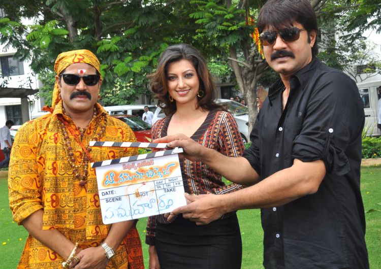 Srikant sounding the clap board on Sri Hari and Hamsa Nandini at Tea Samosa Biscuit movie opening.