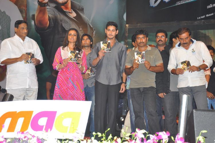 Mahesh Babu's much awaited film Dookudu audio was launched at Silpakala Vedika in Madhapur. Mahesh Babu along with his wife Namrata and noted film personalities like Rajamouli, Sukumar, Hanumatha Rao along with the films cast Samntha, director Srinu Vytla graced the event.