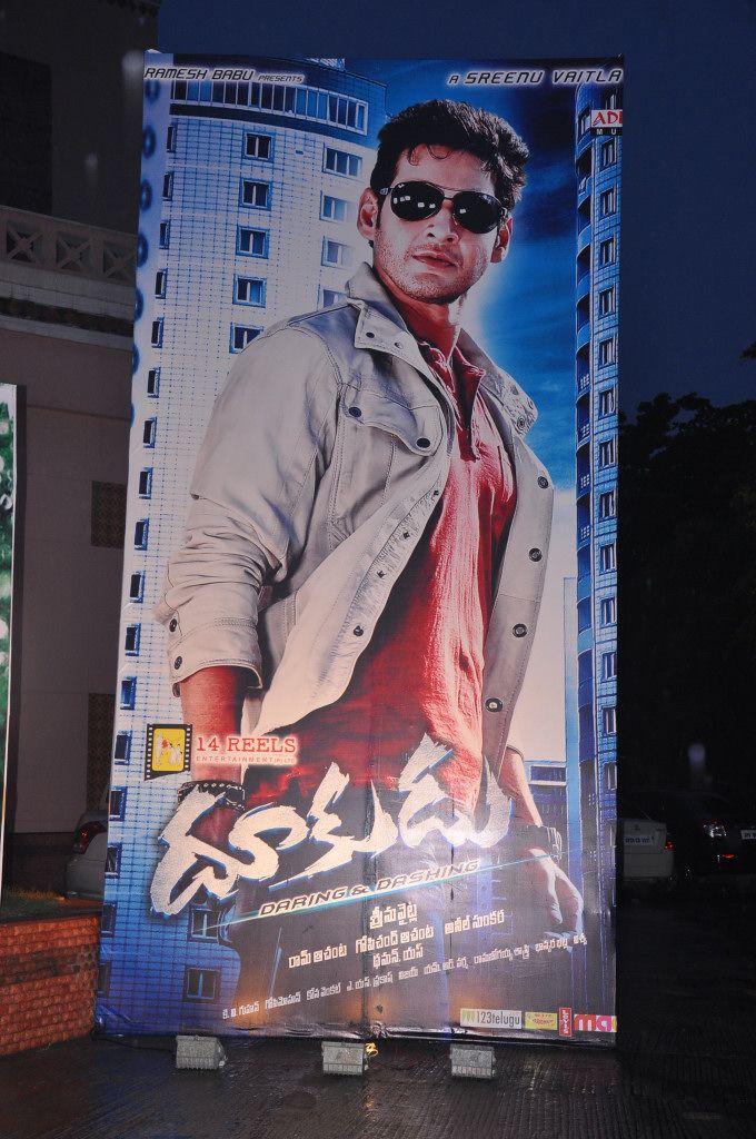 Mahesh Babu's much awaited film Dookudu audio was launched at Silpakala Vedika in Madhapur. Mahesh Babu along with his wife Namrata and noted film personalities like Rajamouli, Sukumar, Hanumatha Rao along with the films cast Samntha, director Srinu Vytla graced the event.