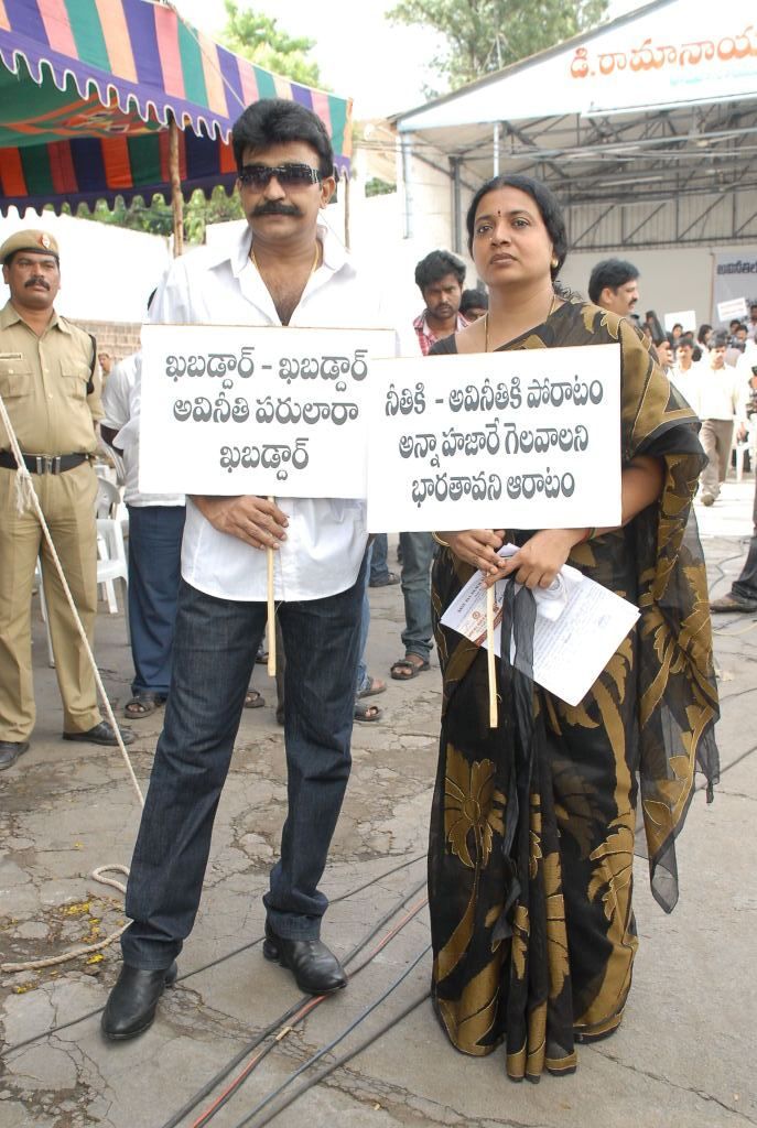 Telugu film stars joined the chorus against corruption with a protest rally and satyagraha to be organised at Filmnagar on Friday. Responding to a call given by The Movie Artistes Association (MAA) actors, producers, directors, film workers and others associated with the film industry joined the protest.